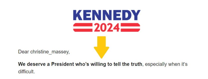 In a July 18th email, Kennedy stated “we deserve a President who’s willing to tell the truth, especially when it’s difficult”.